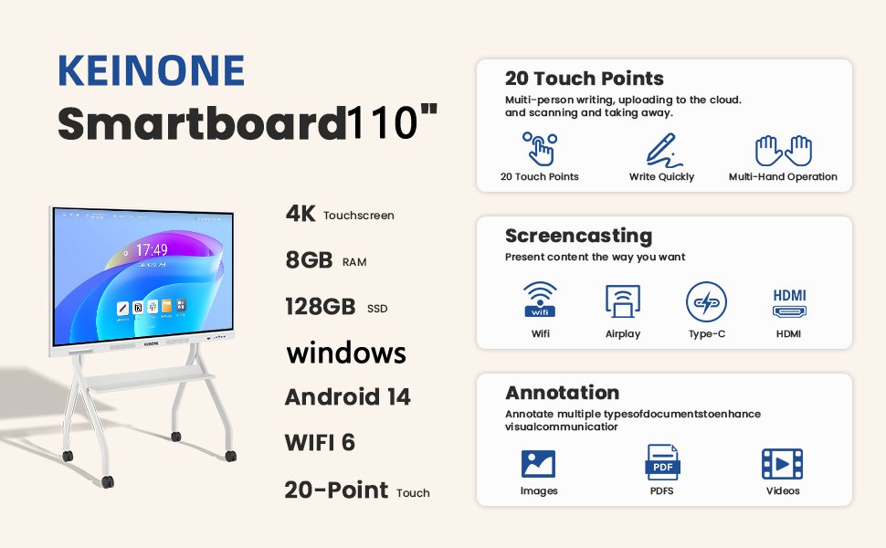 Smart Board 110" inch 4G+32G Android OS / windows 8G+256G